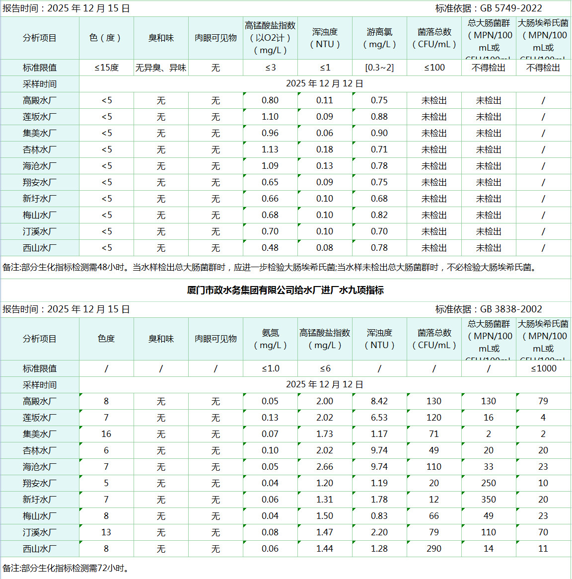 2025年12月12日亚洲情色 给水水厂水质信息公布