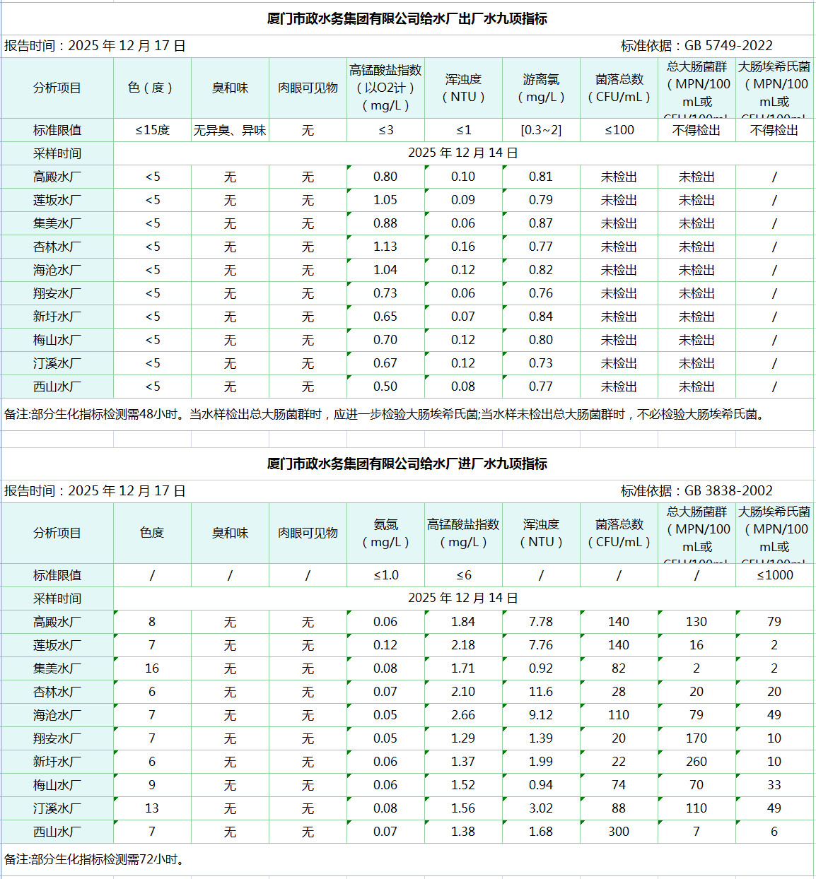 2025年12月14日亚洲情色 给水水厂水质信息公布
