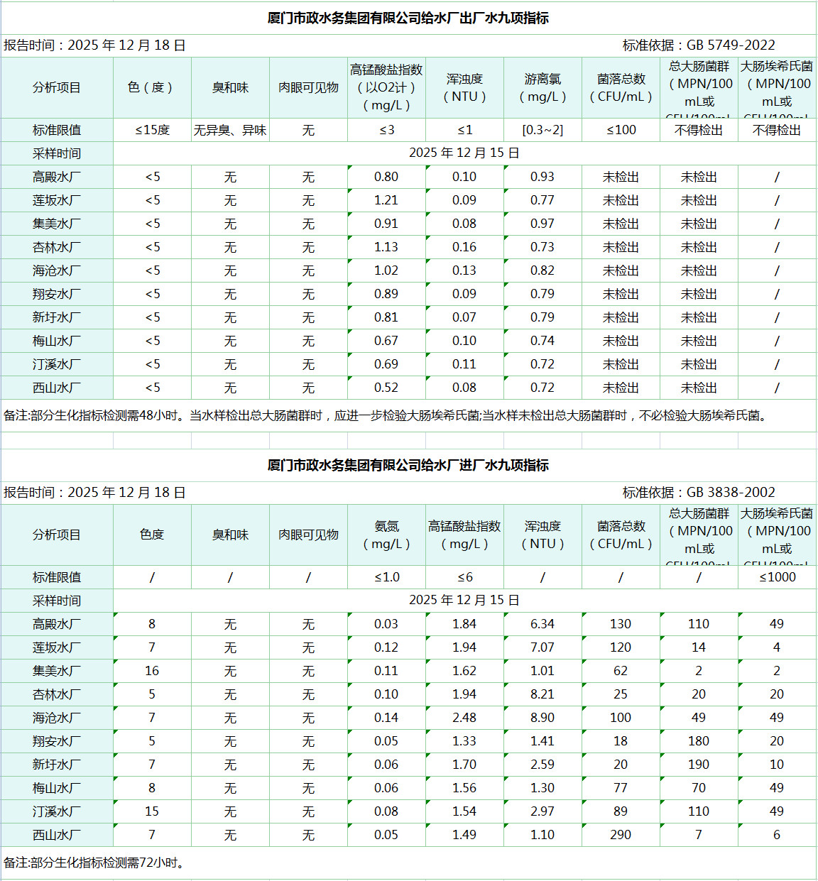 2025年12月15日亚洲情色 给水水厂水质信息公布