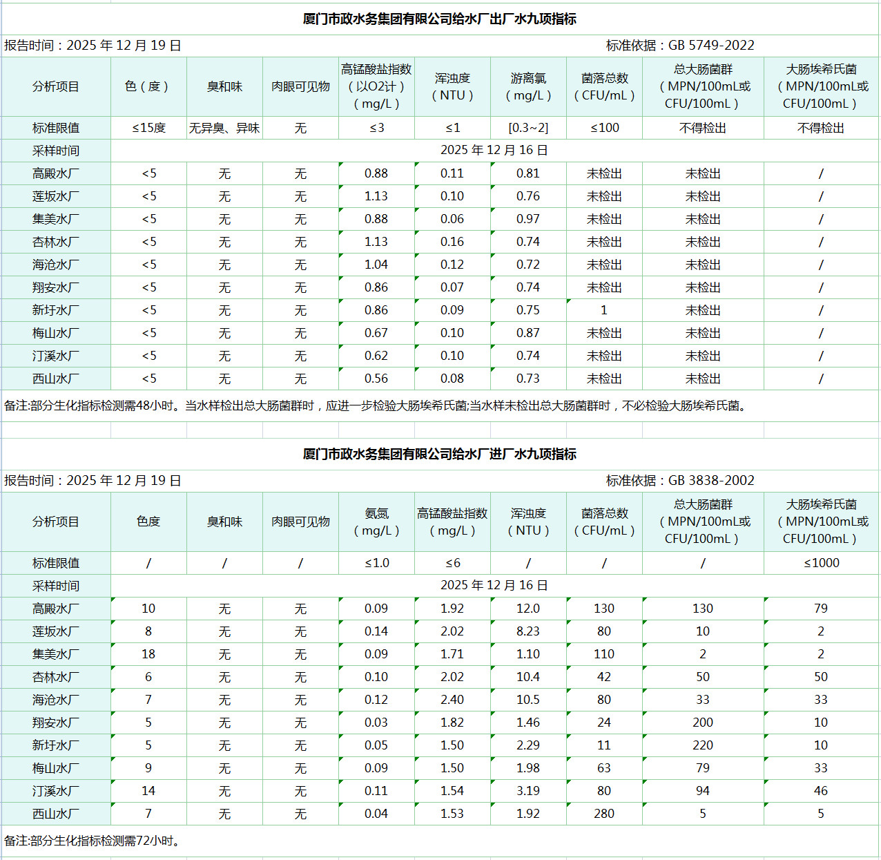 2025年12月16日亚洲情色 给水水厂水质信息公布